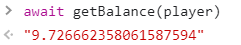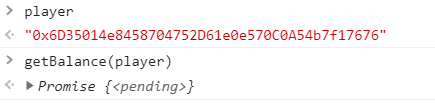 NOTE: Expand the promise to see the actual value, even if it reads "pending". If you're using Chrome v62, you can use await getBalance(player) for a cleaner console experience.